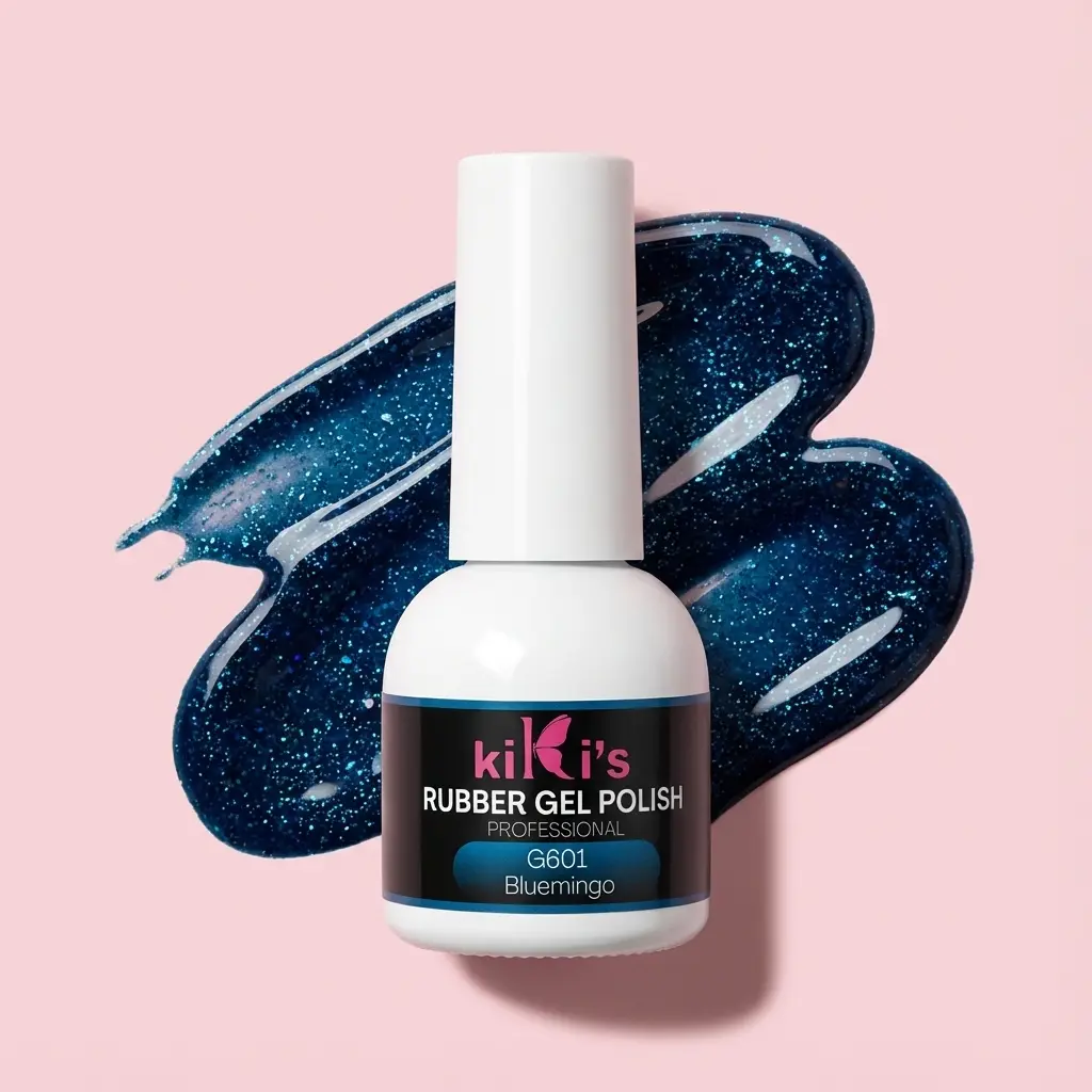La base rubber Bluemingo è una magia pura di blu profondo infuso con glitter finissimi. Questa formula rinforzante offre un effetto tridimensionale unico e una superficie liscia al tatto. Ideale per chi cerca un look scintillante con la sicurezza di un prodotto vegan e HEMA-free.